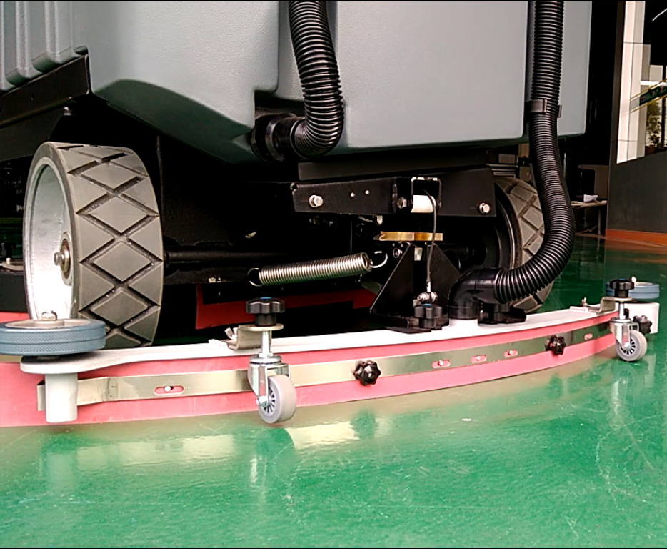 6、更換破損的洗地機(jī)刮條,調(diào)整洗地機(jī)吸水扒的角度,對于正確的使用,洗地機(jī)吸水扒應(yīng)根據(jù)洗地機(jī)刮條的磨損情況來調(diào)節(jié)其高度,在清洗的過程中,洗地機(jī)后刮條應(yīng)與地面呈現(xiàn)一定角度。